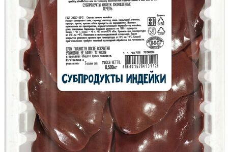 Сведения о составе: Печень индейкиПищевая ценность: 162,18,10,0Условия хранения: 4,0Срок годности в днях: 10Страна изготовления: РоссияСведения об упаковке: Вакуумная упаковкаПроизводитель: ПензаМолИнвест
