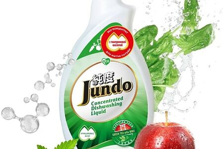 Концентрированный ЭКО гель Jundo c ароматом зеленого чая с мятой эффективно и быстро справляется с мытьем посуды, устраняет жир, остатки пищи и запахи даже в холодной воде. Уникальный состав с гиалуроновой кислотой и эфирными маслами мяты, грейпфрута и бергамота подарят вашей коже бережный уход, увлажнение и заботу. Нежный и приятный аромат чая с мятой. Густое и ароматное облако пены эффективно очищает посуду, а затем моментально смывается водой, не оставляя и следа. Экологичные компоненты позволяют использовать концентрированный ЭКО гель Jundo для мытья детской посуды, игрушек, фруктов и овощей. 1 литр геля приравнивается к 2 литрам обычного средства. Удобный и красивый перламутровый флакон с дозатором позволит контролировать дозирование продукта. Одной капли геля Вам будет достаточно для мытья большого количества посуды.