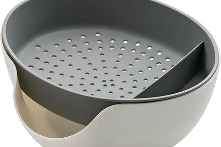 Дуршлаг предназначен для процеживания холодных и горячих напитков (до 90 ˚С), промывания круп, овощей, зелени и ягод. Миска прекрасно подойдет для сервировки стола. Материалы изготовления: пластик PP. Размер изделия в сборе 21,5*22,5*8,5см. Объем 1,4 л.