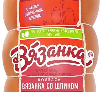Колбаса Вязанка со шпиком вареная 500г делается на основе трех видов мяса с добавлением мелких кусочков натурального шпика и классических специй. Обладает приятным мясным вкусом с легкими нотками чеснока. Имеет довольно плотную структуру, не разваливается при разрезании. Идеально подходит для приготовления бутербродов, нарезок, салатов, горохового супа, солянок, омлетов, пиццы. Она не содержит сои, ГМО и вредных добавок, поэтому ее можно смело предлагать детям. Сетка, используемая в дизайне упаковки, напоминает ручную обвязку. Продукция ТМ «Вязанка» производится из тщательно подобранных ингредиентов с особым вниманием к качеству.
