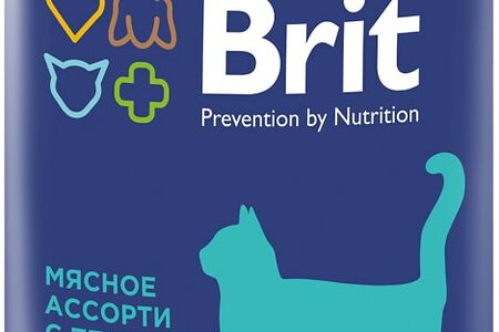 Влажный корм для кастрированных котов Brit Мясное ассорти с птицей 340г - это полнорационный консервированный корм премиум-класса с говядиной, курицей и субпродуктами.
