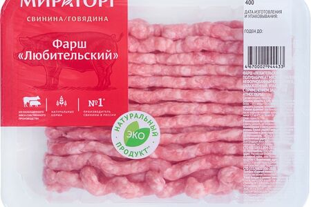 Фарш Мираторг Любительский 400г приготовлен из отборной охлажденной свинины и говядины. Широко используется в кулинарии и является основой многих блюд. Из мясного фарша можно приготовить котлеты и тефтели, зразы и фрикадельки, колдуны и ежики, запеканки и голубцы. Смешанный фарш станет отличной основой для знаменитого соуса Болоньезе, а также начинкой для блинчиков и пирогов. Компания Мираторг - ведущий поставщик мяса и мясных изделий на российском рынке, продукция которого производится по международным стандартам и отличается высоким качеством.
