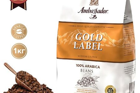 Ambassador Gold label — это «золотой» бленд в зернах в линейке Ambassador. Кофе создан из кофейных зерен арабики высокого качества для особенных кофейных моментов. Вкус кофе деликатный, бархатный, со сладковатым оттенком.