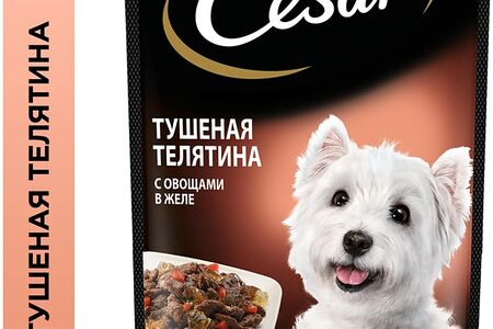 Влажный корм для собак Cesar с тушеной телятиной и овощами в желе 85г доставка