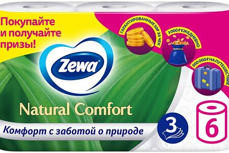 Туалетная Бумага Zewa Natural Comfort 6 рулонов 3 слоя в ассортименте доставка