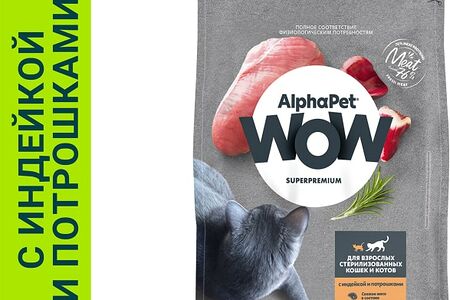 Сухой корм для стерилизованных котов и кошек AlphaPet Wow SuperPremium с индейкой и потрошками 350г доставка