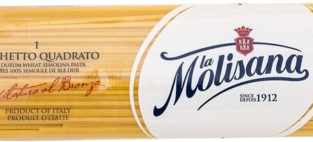 Макароны La Molisana Spaghetto Quadrato №1 450г - это оригинальные макаронные изделия, квадратные в поперечном сечении (2*2мм). Они производятся в итальянском регионе Молизе из лучших сортов пшеницы и чистейшей горной воды, которая спускается с вершины горы Матезе. Традиционный способ приготовления Trafilatura al bronzo (продавливание теста через специальные бронзовые формы) делает поверхность пасты шероховатой, благодаря чему она хорошо удерживает соусы. Квадратные спагетти рекомендуется варить 13 минут и подавать с классическими соусами Карбонара, сливочно-грибным, Маринара или Аматричиана.