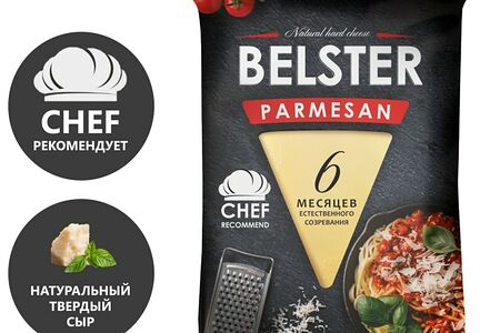 Belster Parmesan — натуральный твердый сыр. Благодаря длительному, более 6 месяцев, естественному созреванию вкус сыра становится более ярким и насыщенным, с фруктовыми нотами и чуть пряным послевкусием, а текстура приобретает характерную ломкость и плотность.