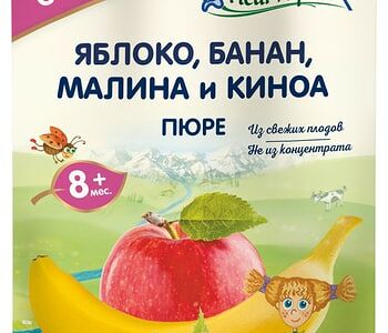 Пюре Fleur Alpine Яблоко Банан Малина и Киноа с 8 месяцев 120г – изумительное лакомство, которое непременно оценят не только малыши, но и детки постарше. Производится исключительно из свежих фруктов и ягод, а не из концентрата. В состав также входит мука из киноа – ценный источник витаминов группы В и минеральных веществ. Пюре не содержит сахара, крахмала, консервантов, искусственных красителей, ароматизаторов и ГМО. Обладает приятным вкусом, в котором гармонично сочетаются нежные нотки банана, естественная сладость спелого яблока и благородная кислинка малины. Имеет оптимальную, в меру густую консистенцию. Fleur Alpine – это экологически чистое, по-настоящему полезное и вкусное детское питание премиум-класса. Все входящие в его состав компоненты (овощи, фрукты, ягоды и злаки) выращиваются без применения пестицидов, стимуляторов роста, минеральных удобрений и антибиотиков, что подтверждается сертификатами Европейского Союза об органическом сельском хозяйстве.