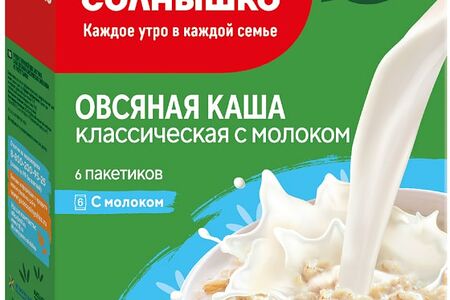 Каша овсяная Ясно солнышко Классическая с молоком 6пак*45г - это каша моментального приготовления, не требующая варки. Она сделана из натуральных ингредиентов без добавления ароматизаторов, консервантов, красителей и стабилизаторов. В ее состав входят овсяные хлопья, обработанные по технологии двойного пропаривания, цельное сухое молоко, немного сахара и соли. Готовить ее проще простого: переложите смесь в тарелку, залейте 180 мл кипятка или горячего молока, оставьте под крышкой на 3-5 минут и наслаждайтесь вкусным и полезным завтраком! В коробке - 6 пакетиков.
