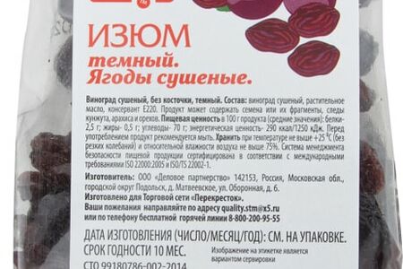 Сведения о составе: Виноград сушеный, растительное масло, консервант Е202Пищевая ценность: 290,2.5,0.5,70Условия хранения: 25Срок годности в днях: 365Страна изготовления: РоссияСведения об упаковке: ПакетПроизводитель: Ника