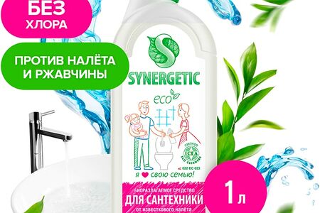 Средство для мытья сантехники Synergetic 1 л произведено из растительных Н-тензидов и натуральных кислот: молочной, лимонной и гликолевой. Благодаря щадящему экологичному составу оно подходит для мытья керамической плитки, акриловых, фаянсовых, эмалированных и хромированных поверхностей. Без труда удаляет известковый налет, ржавчину, минеральные отложения и неприятные запахи. Ликвидирует 100% микробов и бактерий, обладает ненавязчивым легким ароматом бергамота, мяты, лимона и сантала. Не содержит в составе хлора, отлично работает в жесткой и холодной воде. Безопасно для детей, домашних животных и людей с чувствительной кожей.