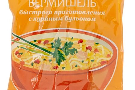 Сведения о составе: Вермишель: мука пшеничная хлебопекарная высшего сорта, масло пальмовое, вода, соль, мука из твердых сортов пшеницы (дурум), улучшитель муки «Плекс» (соль, загуститель Е1400, антиокислитель лимонная кислота, эмульгаторы: Е452, Е471, Е322). Сухая вкусовая приправа: соль, комплексная пищевая добавка «Со вкусом курицы» (ароматизатор, усилитель вкуса (глутамат натрия), перец черный молотый, лук сушеный, усилитель вкуса (Е631, Е627), сахар, морковь сушеная), усилитель вкуса (глутамат натрия), зелень петрушки сушеная, куркума молотая, фарш куриный варено-сушеный. Пряности: соль, чеснок сушеный, зелень укропа сушеная, паприка красная молотая, перец красный и черный молотыеПищевая ценность: 410,7.5,20,49Условия хранения: 30,0Срок годности в днях: 365Страна изготовления: РоссияСведения об упаковке: ФлоупакПроизводитель: Импрод