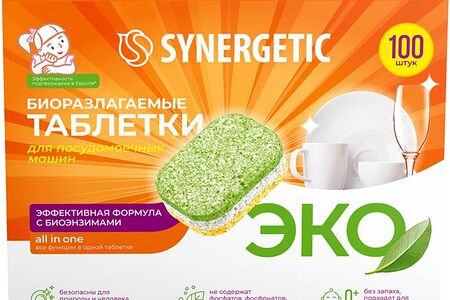 Таблетки для посудомоечных машин Synergetic биоразлагаемые бесфосфатные 100шт доставка