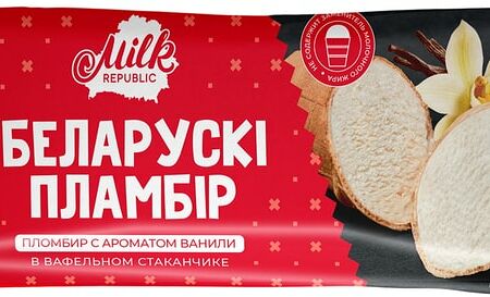 Мороженое Milk Republic Белорусский Пломбир с ароматом ванили в вафельном стаканчике 15%.80г доставка