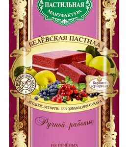 Сведения о составе: Яблки, черная смородина, клюква,брусника, черника, яичный белокПищевая ценность: 276,4,0,65Условия хранения: 21,8Срок годности в днях: 365Страна изготовления: РоссияСведения об упаковке: Картонная упаковкаПроизводитель: Белёвская пастила