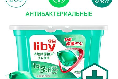 Капсулы для стирки Liby 3в1 с антибактериальным эффектом 52шт доставка