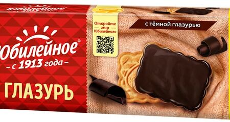Печенье "Юбилейное молочное с темной глазурью" — это то самое печенье со 110-летней историей, которое окунет вас в детство. Нежная тёмная шоколадная глазурь на сладком витаминизированном печенье будет прекрасным вкусным десертом на праздничном столе или пикнике, отлично подойдет в качестве полезного перекуса на прогулке, университете или школе, станет идеальной парой к чаю, кофе, соку или молоку.