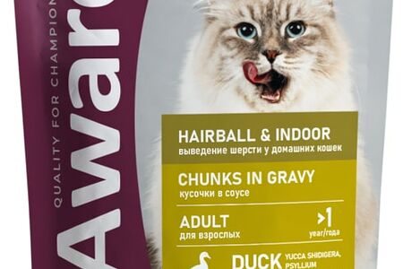 Влажный корм для кошек Award Hairball & Indoor для выведения шерсти кусочки в соусе с уткой 85г доставка