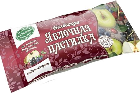 Сведения о составе: Яблоки, сахар,черная смородина,клюква,брусника,черника,яичный белок.Пищевая ценность: 300,1,74Условия хранения: 21,10Срок годности в днях: 180Страна изготовления: РоссияСведения об упаковке: Флоу-пакПроизводитель: Белевская пастила