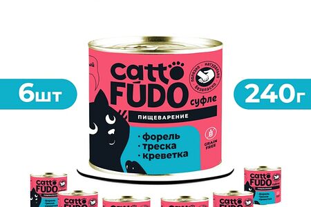 Влажный корм для кошек Cattofudo суфле Форель с треской и креветкой 6*240г доставка