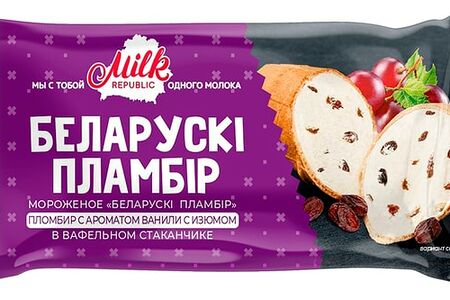 Мороженое Milk Republic Белорусский Пломбир с ароматом ванили с изюмом в вафельном стаканчике 15% 80г доставка