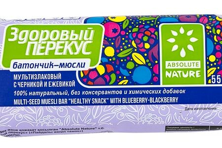 Батончик мюсли Здоровый Перекус с черникой и ежевикой 55г - это полезный и питательный продукт, приготовленный исключительно из натуральных ингредиентов. В его состав входят хлопья четырех видов зерновых, воздушные злаки, свежие ягоды черники, ежевики и красной смородины. Батончик не содержит сахара, искусственных красителей, ароматизаторов и консервантов. Он быстро утоляет голод и идеально подходит для правильного перекуса. Благодаря удобному формату, его можно брать с собой в путешествие, на работу или учебу. Продукт стал лауреатом международного конкурса "Лучший продукт-2017".