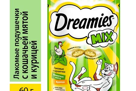 Лакомство для кошек Dreamies Mix с курицей и кошачьей мятой 60г доставка