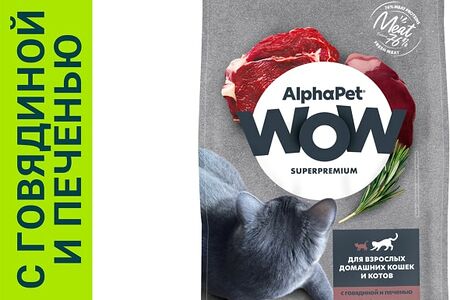 Сухой корм для кошек AlphaPet Wow SuperPremium c говядиной и печенью 750г доставка