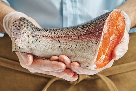 Форель хвостовая часть охлажденная – свежайшая красная рыба, которую никогда не замораживали. Целые тушки разделывают в специально оборудованном холодном цеху исключительно под ваш заказ. Аккуратно отрезанный кусок помещают в вакуумную упаковку, чтобы сохранить максимальную свежесть продукта во время транспортировки. Форель очень полезна для организма: она служит ценным источником витаминов, минеральных веществ, Омега-3 и белка, укрепляет кровеносные сосуды, оказывает положительное воздействие на нервную систему и опорно-двигательный аппарат, нормализует обмен веществ, благотворно влияет на работу сердца. Хвостовая часть отлично подойдет для супов, салатов, вторых блюд и закусок. После получения товара рекомендуется достать рыбу из упаковки.