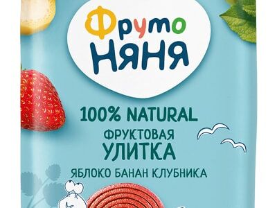 Фруктовая улитка ФрутоНяня Яблоко банан и клубника с 12 месяцев 15г доставка