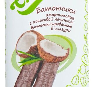 Батончики Умные сладости амарантовые с кокосовой начинкой в глазури без глютена 20г доставка