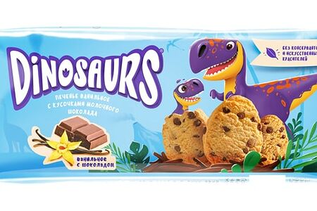 Печенье Kelloggs Dinosaurs Сдобное ванильное с кусочками молочного шоколада 120г доставка