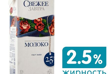 Молоко Свежее Завтра ультрапастеризованное 2.5% 980г свежайшее отборное коровье молоко, прошедшее бережную тепловую обработку. Ультрапастеризация позволяет продлить срок его хранения и уничтожить патогенные бактерии, но сохранить все витамины и минералы. Массовая доля жира 2.5%. В составе нет консервантов, искусственных добавок и Е-компонентов. Разливается в условиях стерильности, а надежная многослойная упаковка с отвинчивающейся крышечкой помогает защитить молоко от воздействий окружающей среды. Свежее Завтра классическая молочная продукция высочайшего качества, произведенная на самом современном оборудовании. Производитель гарантирует чистоту, безопасность и натуральность, а также отсутствие ГМО и антибиотиков.