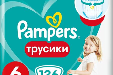 Подгузники трусики Pampers 6 размер / 15+ кг с мягким пояском 136шт доставка
