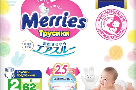Подгузники-трусики Merries S 4-8кг 62шт созданы специально для самых маленьких деток, которые только учатся управлять своим телом и предпринимают первые попытки к переворачиванию на бок. Тонкие трусики прекрасно впитывают жидкость, легко надеваются, не оставляют следов на нежной коже и не протекают, даже когда малыш лежит на спинке. Они имеют более широкий впитывающий слой по всей области между ножек, что обеспечивает надежное поглощение мочи и жидкого стула. Уникальная технология трех дышащих слоев позволяет испарениям выходить наружу через специальные микропоры, благодаря чему попка вашего крохи всегда будет сухой. Мягкая и шелковистая внутренняя поверхность гарантирует непревзойденный комфорт, а эластичные оборочки вокруг ножек дарят дополнительную защиту от протеканий. Когда придет время заменить трусики, две центральные полоски окрасятся в голубой цвет. Снять их проще простого: для этого достаточно разорвать боковой шов. Изделия имеют привлекательный дизайн с фирменными зайчиками Merries.