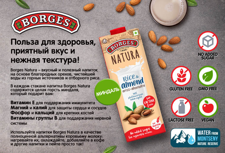 Ореховый Напиток Borges Natura Миндаль 1л доставка
