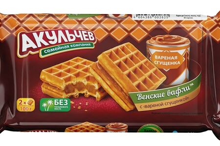 Вафли Акульчев Венские с вареной сгущенкой 100г доставка