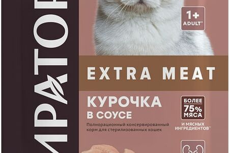 Влажный корм для стерилизованных кошек Мираторг Extra Meat Курочка в соусе 80г доставка