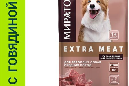 Сухой корм для собак Мираторг Extra Meat с говядиной Black Angus для средних пород 10кг доставка