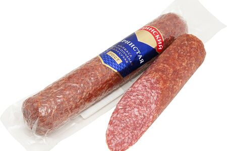 Колбаса Клинский Зернистая сырокопченая приготовлена по классическому рецепту ГОСТ из отборной говядины и нежной свинины с добавлением чеснока и пряных специй. Срез мелкозернистый, насыщенного бордового цвета, с вкраплениями мелкого шпика. Отличный выбор для праздничного застолья или фуршета. Вся продукция Клинского мясоперерабатывающего комбината проходит тщательный контроль качества на всех этапах производства, готовится из отборных натуральных ингредиентов по рецептам ГОСТ или авторским рецептам местных технологов.