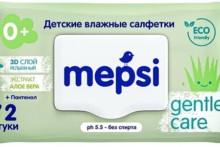 Салфетки влажные Mepsi Gentle Care Алоэ вера с клапаном детские 72шт доставка