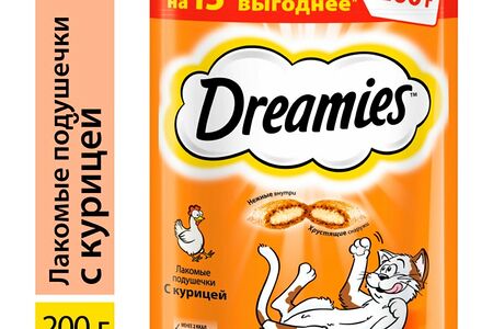 Лакомство для кошек Dreamies подушечки с курицей 200г доставка