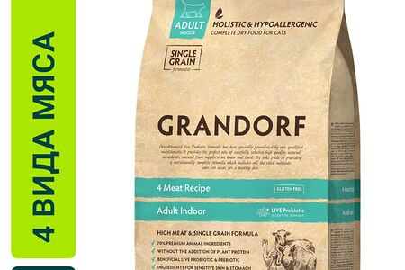 Сухой корм для кошек Grandorf Adult Indoor 4 вида мяса 400г доставка