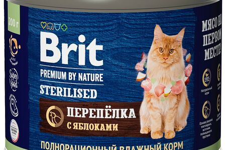 Влажный корм для кошек Brit Premium by Nature с мясом перепелки и яблоками для стерилизованных 200г доставка