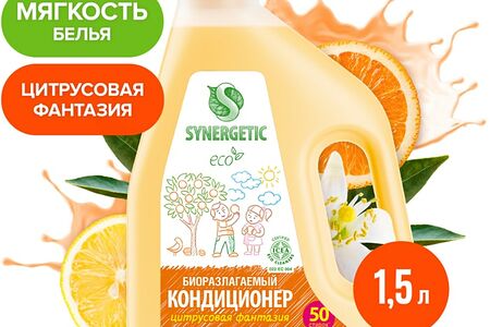 Кондиционер-ополаскиватель для белья Synergetic Цитрусовая фантазия 50 стирок 1.5л доставка