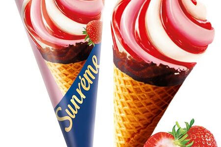 Мороженое Sunreme Клубника со сливками в вафельном рожке 120мл доставка