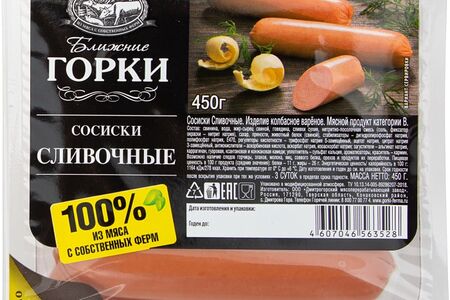 Сосиски Ближние горки Сливочные ГОСТ 450г прекрасно подходят для семейного завтрака, обеда или ужина. Изготовлены в соответствии с рецептурой ГОСТ из охлажденного фермерского мяса с добавлением натуральных сливок и ароматных специй. Вакуумная упаковка способствует сохранению свежести в пределах всего срока годности. Ближние Горки это высококачественная продукция, которая проходит многоэтапный контроль и соответствует самым строгим требованиям к экологичности и санитарному состоянию. Фермы компании расположены за городом вдали от крупных транспортных магистралей и производств. Животные получают сбалансированные корма и растут в естественном цикле, что позволяет получить по-настоящему вкусное и безопасное мясо.