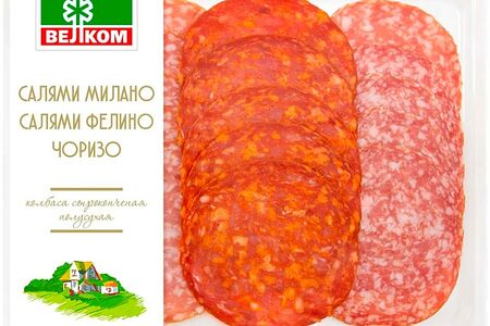 Ассорти колбас Велком Салями Милано Салями Фелино Чоризо сырокопченые полусухие 150г доставка