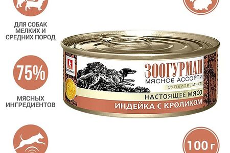Влажный корм для собак Зоогурман Мясное ассорти Индейка с кроликом 100г доставка